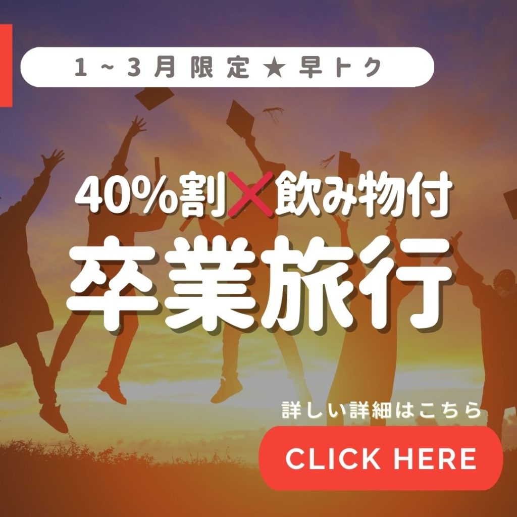 \卒業旅行を検討中の方必見/ 1泊2食付きの宿泊で、最大40%OFFの卒業旅行プランが今年も登場しました!